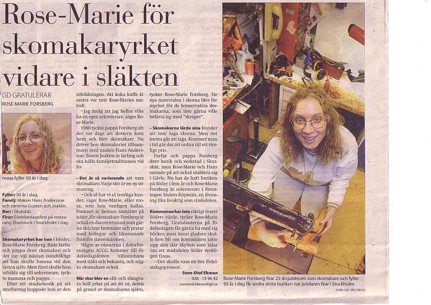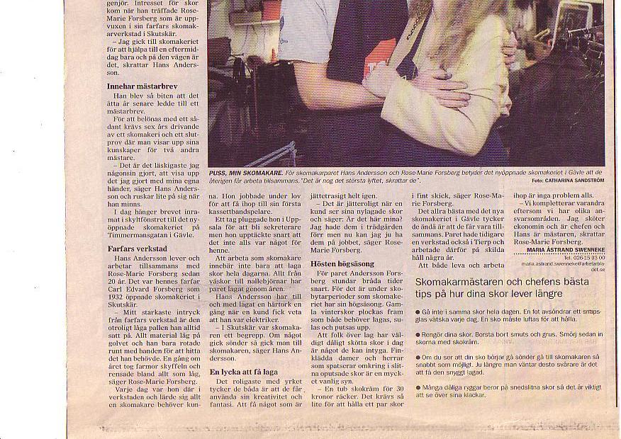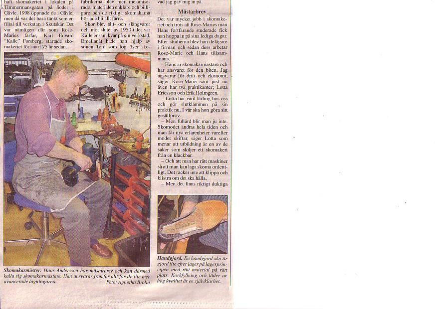 Arbetarbladet Reportage Del 2 000920 Gävles käraste skomakare