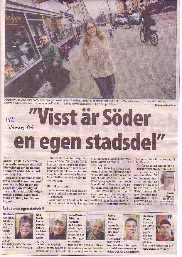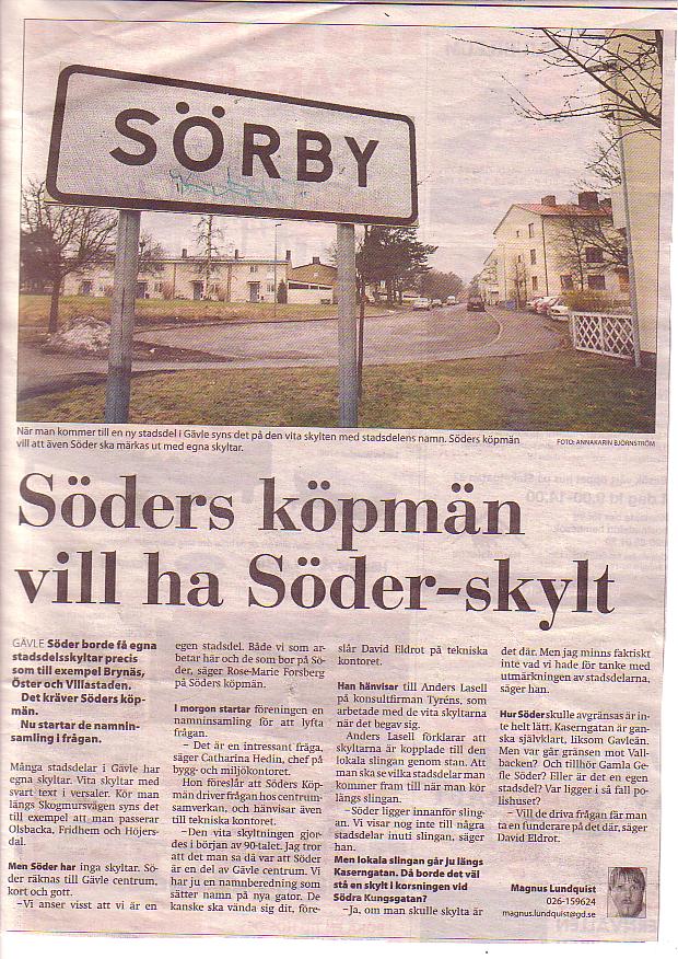 Gefle Dagblad Reportage 070324 Söders Köpmän vill ha Söderskylt