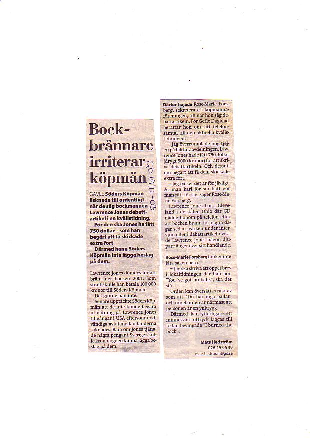 Gefle Dagblad Artikel 031219 Bockbrännare irriterar köpmän