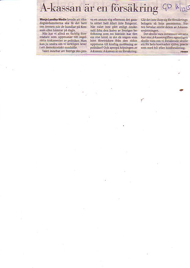 Gefle Dagblad Insändare 061218 A-kassan en försäkring