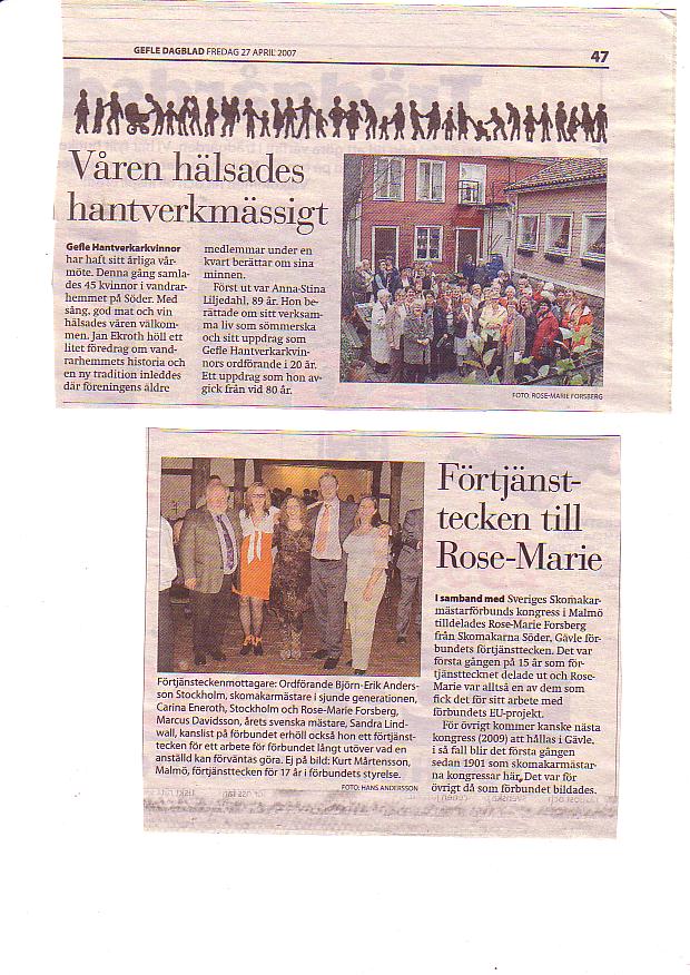 Gefle Dagblad Folk & Sånt 070427 Hantverkarkvinnors vårfest och Förtjänsttecken