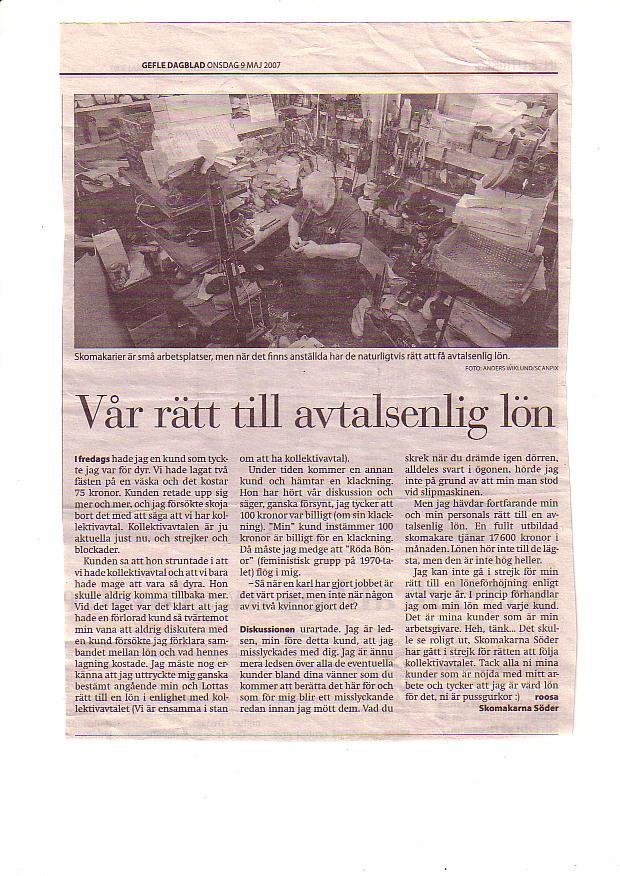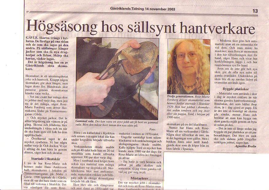 Arbetarbladet Reportage Del 1 000920 Gävles käraste skomakare