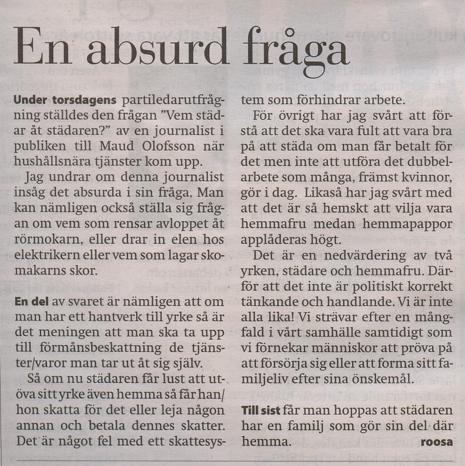 Gefle Dagblad Insändare 060904 Vem städar åt städaren?